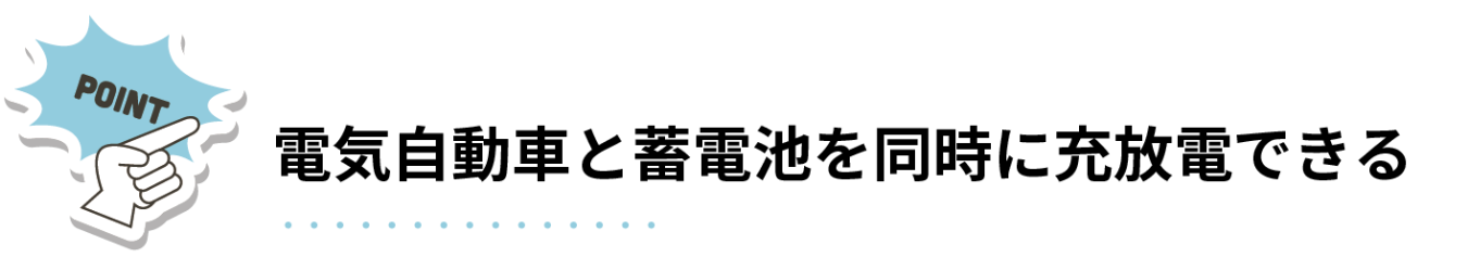 eneplatの最大の特長は、電気自動車と蓄電池を同時に充放電できる点にあります。