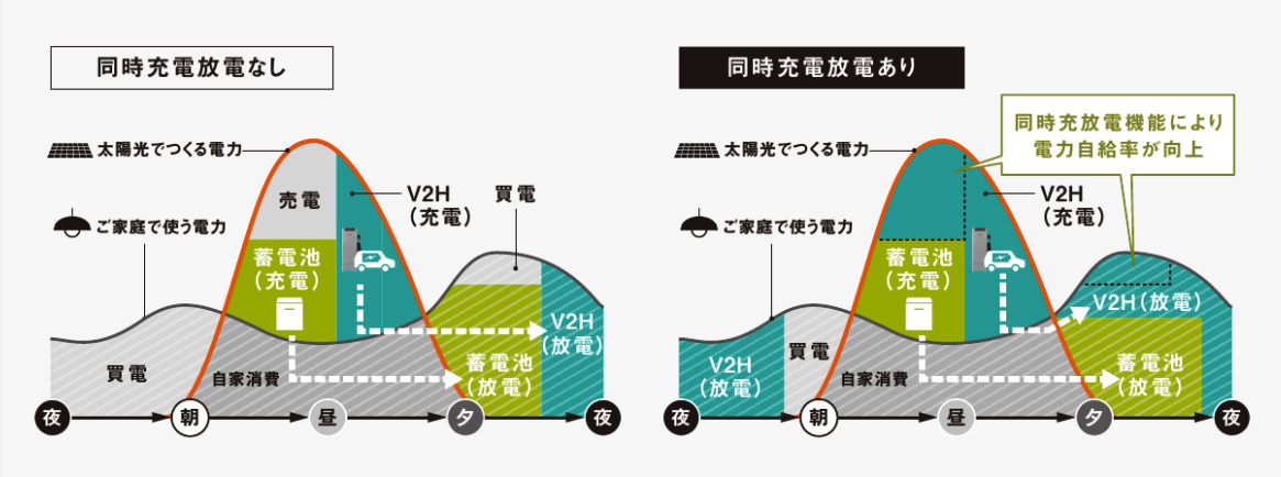 業界初※!車と蓄電池の同時充放電が可能なため、経済効果を重視する方に最適なV2Hシステム