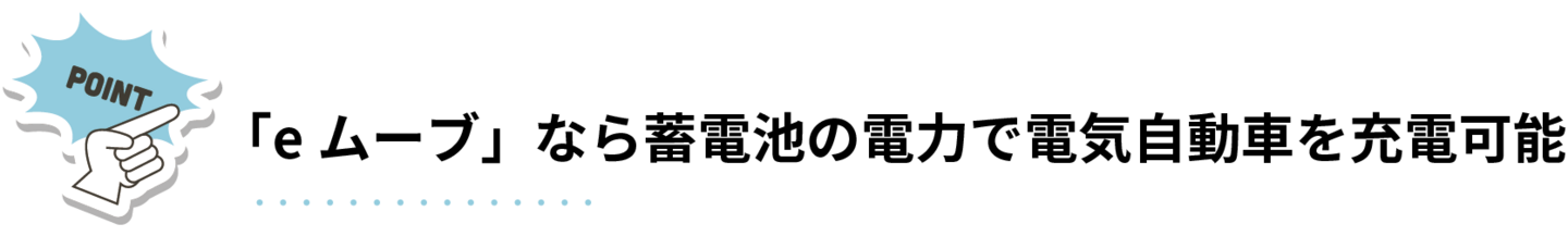 この電気自動車と蓄電池の電力を相互に充放電できる機能が「eムーブ」です。
