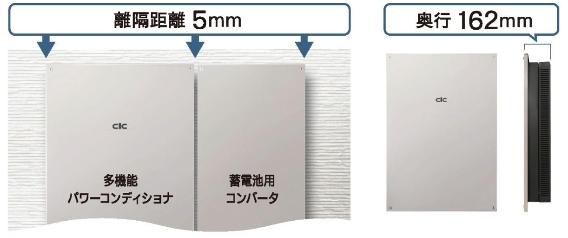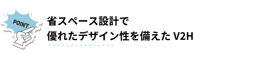 長州産業「SMART PV EVO」は、V2Hスタンドと多機能パワーコンディショナの両方が省スペース設計。限られた駐車スペースや、スッキリとした外観を求める住宅にも最適なV2H製品です。さらに、コンパクトな蓄電池ユニットは2台設置で大容量・高出力を実現し、停電時も安心して電力を確保できます。