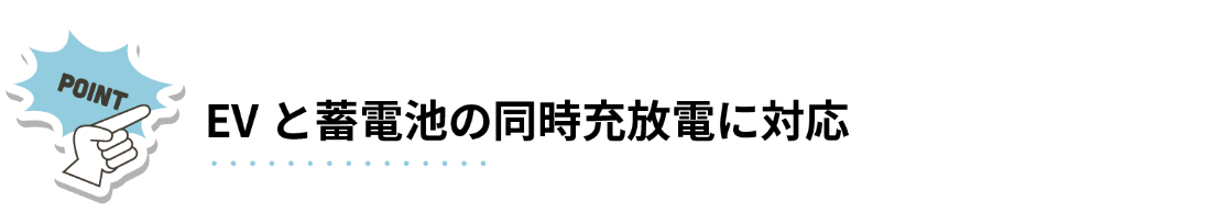 EVと蓄電池の同時充電機能により、太陽光発電の電力をEVと蓄電池の両方に同時に充電可能。