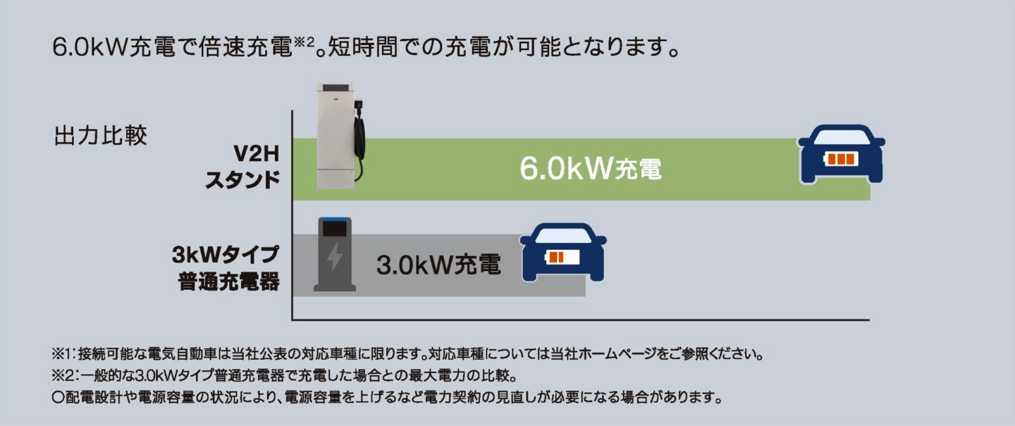 最大6.0kW充電対応で、一晩で十分な充電が可能。急なドライブ予定にも安心です。